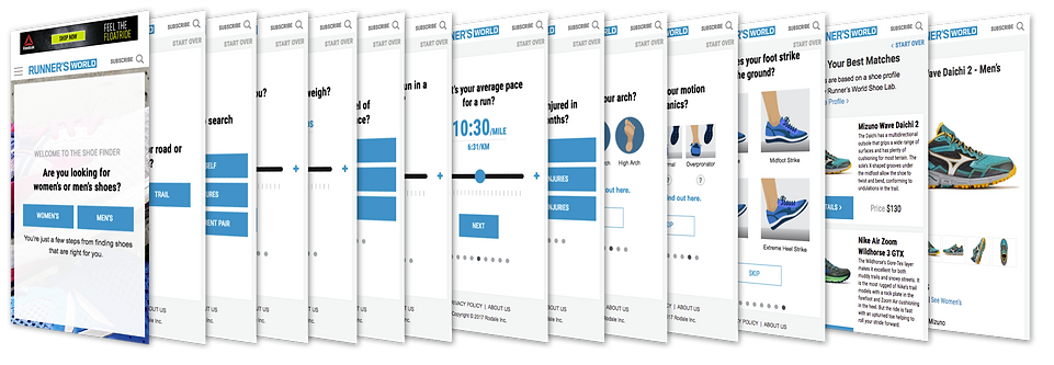 End user interviews (consumers and shoe "testers") revealed three primary mindsets by which runner's think about shoes when looking for a new pair online: